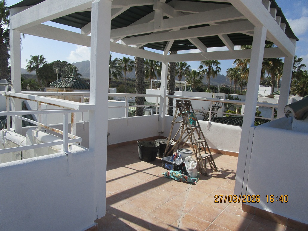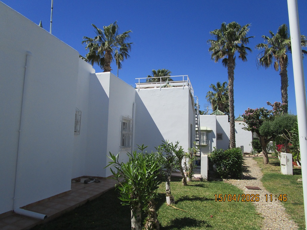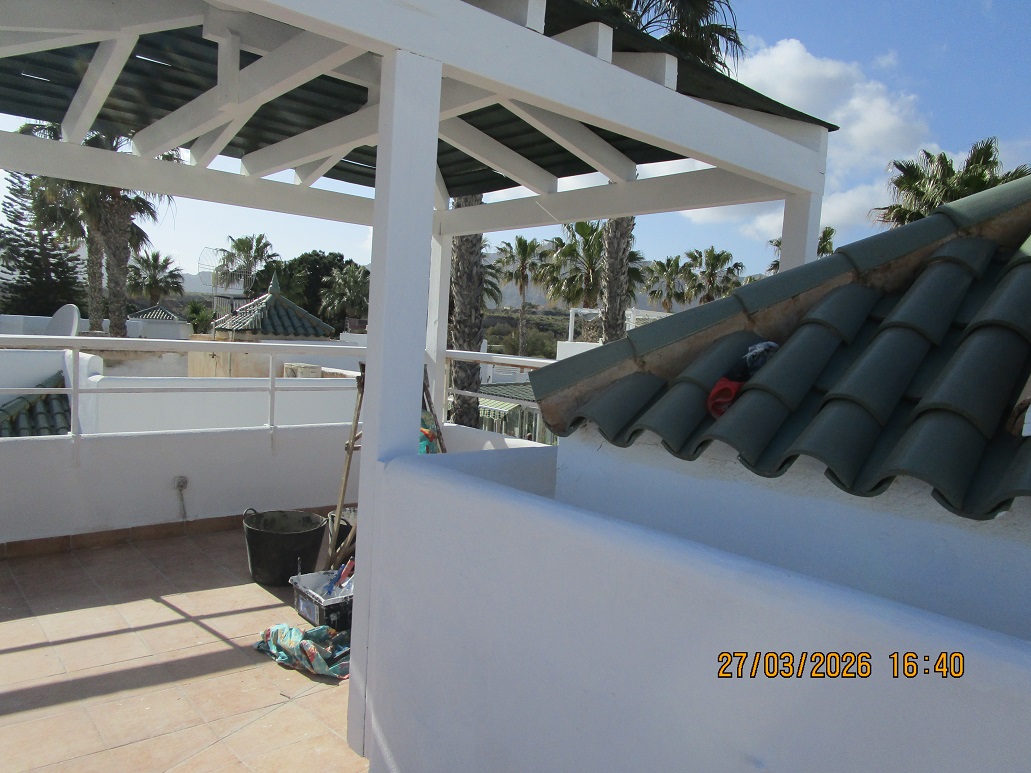 Esta villa en venta en San Juan de los Terreros es ideal como un hogar donde vivir permanente o pasar unos dias de vacaciones . Ubicada en un residencial tranquilo, en un amplio jardín comunitario con césped, árboles frutales, palmeras, buganvillas, cactus.. Actualmente se está reformando: se está instalando un nuevo solárium (azotea) y se pintará el interior y el exterior. Se adjuntan fotos de antes de la renovación. También algunas fotos que muestran el progreso de la renovación. . Se han retirado todos los muebles, incluidos los armarios de la cocina, para que el nuevo propietario pueda amueblarlo a su gusto. La casa dispone de dos luminosos dormitorios con armarios empotrados y espacio suficiente para camas dobles o individuales. Un baño adaptado con plato de ducha y 2 lavabos . Los toldos le permiten protegerse de los rayos solares en verano. Desde la sala de estar, se puede abrir las rejas y las 2 puertas correderas de la esquina que son puertas de cristal y así extender la sala de estar hasta la terraza acogedora, que lo hace sentir mucho más grande . La casa también tiene escalera para acceder a solárium donde puede organizar barbacoa, disfrutar como rincón de relax y de las preciosas vistas al mar, pueblo y montañas. Para las necesidades diarias, encontrarás una gran variedad de tiendas: supermercados, panaderías y pastelerías, pescaderías, carnicerías, farmacias, peluquerías, centro cultural, centro de salud, bares y restaurantes. San Juan de Los Terreros, antiguo pueblo de pescadores, es el pueblo más oriental de Andalucía. Para relajarse, San Juan de Los Terreros ofrece varias playas de arena dorada con bandera azul donde se puede tomar el sol. En San Juan de los Terreros existe quizás una de las playas de arena más hermosas de la región. Siguiendo el bonito paseo marítimo se encuentran varios bares y restaurantes que están abiertos casi todo el año